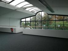 Der vordere Gebäudeteil beinhaltet auf 2 Etagen ca. 986 m² Büro- Konferenz- und Sozialräume.