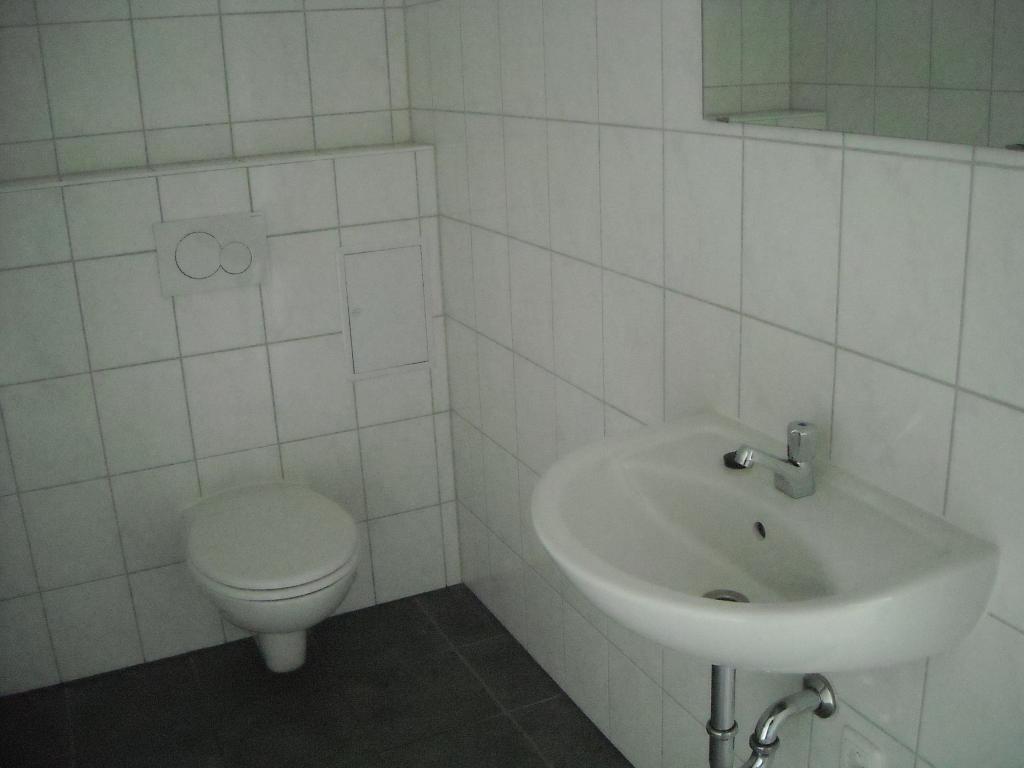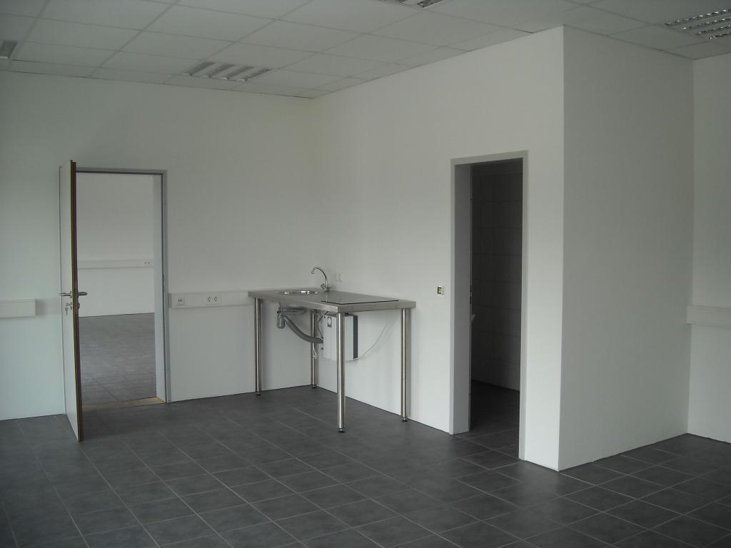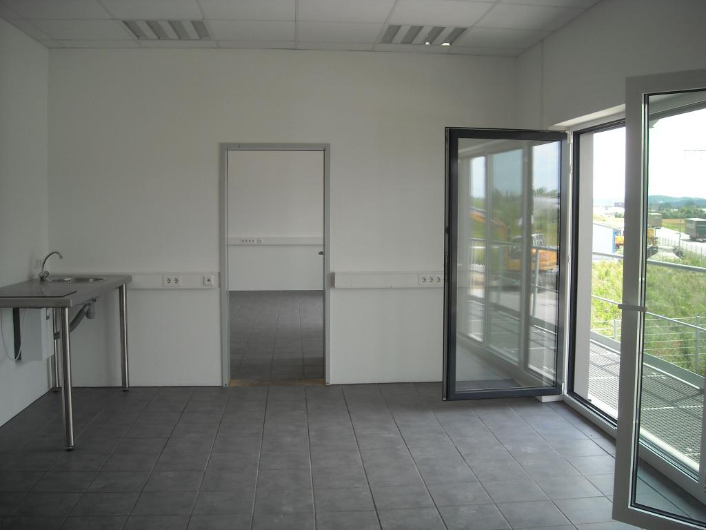 verkehrsgsünstiger Büroraum, Teeküche, WC, große Fensterfront, Fußbodenheizung, graue Bodenfliesen, incl. 1 PKW-Stellplatz 50 €.