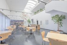 Zwei Foyers mit großen Glaswänden, Sozialräume, hochwertige Caferteria-Ausstattung bestuhlt für ca. 50 Mitarbeiter. Schulungsraum mit Ausstattung.