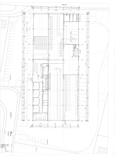 Der vordere Gebäudeteil beinhaltet auf 2 Etagen ca. 986 m² Büro- Konferenz- und Sozialräume.