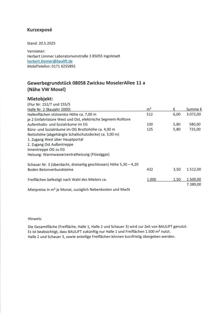Halle 1 (Baujahr 1994) mit Büro und Freiflächen: 3.500 m²